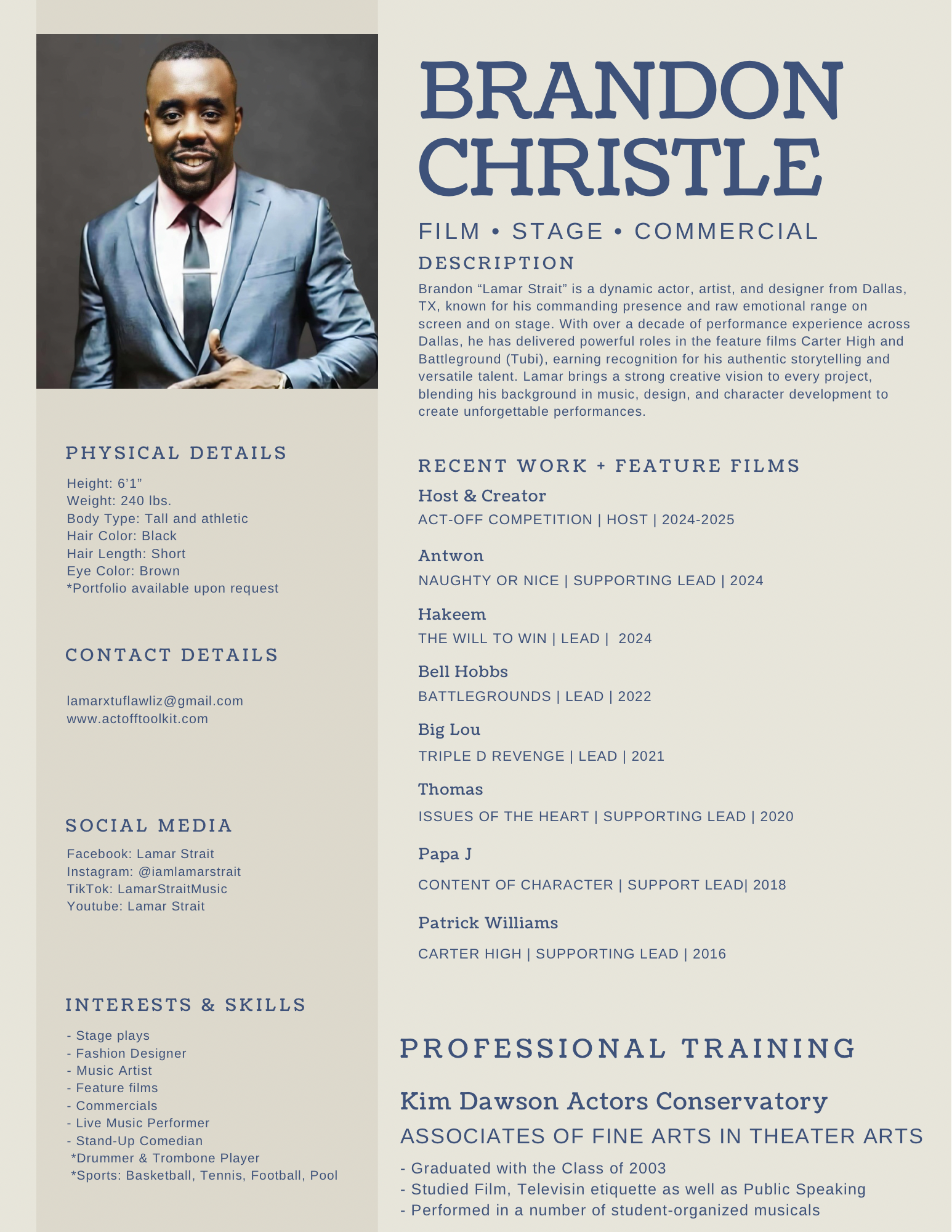 Unlock your full acting potential with personal coaching from Lamar Strait, creator of ACT-OFF and a Dallas-based performer with 10+ years of stage experience. Whether you’re preparing for a monologue, audition, acting competition, or building your confidence, these sessions give you real industry-level instruction tailored to your goals.